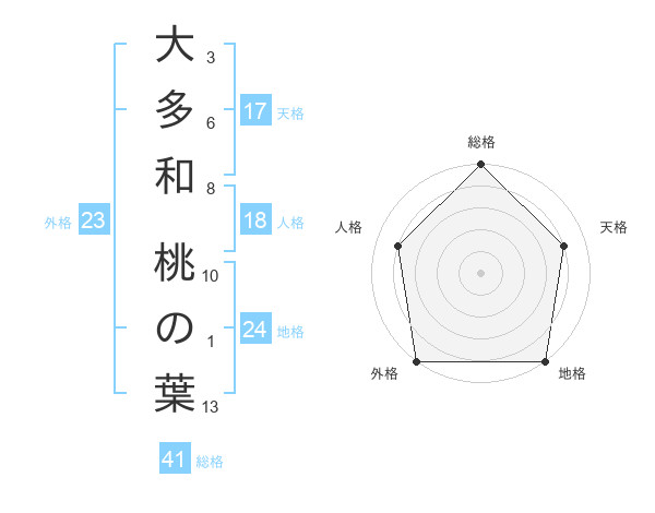 大多和 桃の葉さんを姓名の画数から五運を鑑定