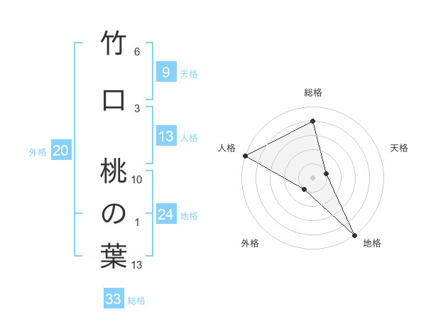 竹口 桃の葉さんを姓名の画数から五運を鑑定