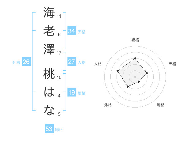 海老澤 桃はなさんを姓名の画数から五運を鑑定