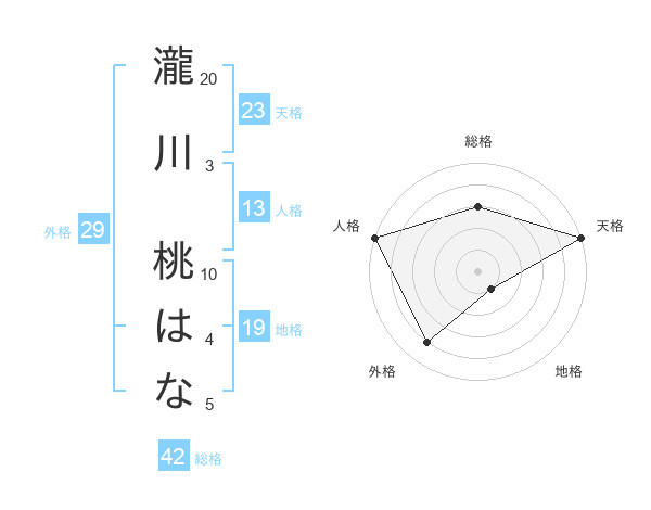瀧川 桃はなさんを姓名の画数から五運を鑑定