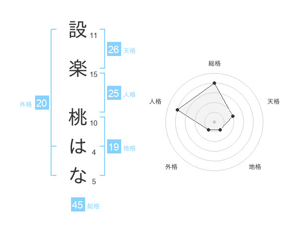 設楽 桃はなさんの総格は45画の4点