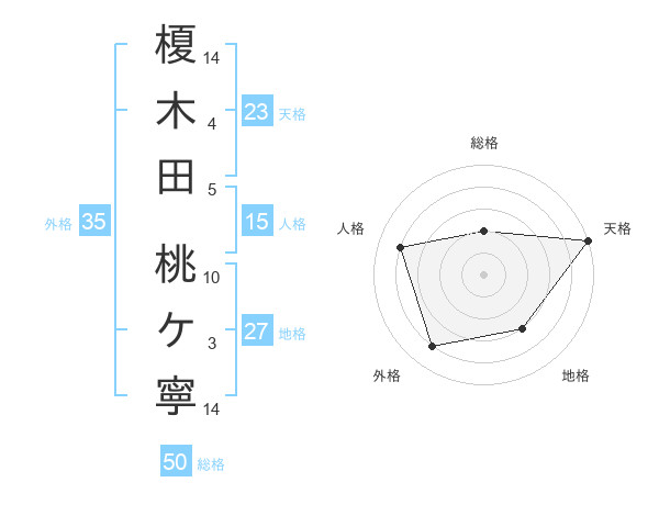 榎木田 桃ケ寧さんの総格は50画の2点