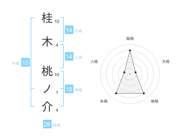 桂木 桃ノ介さんの総格は29画の4点!