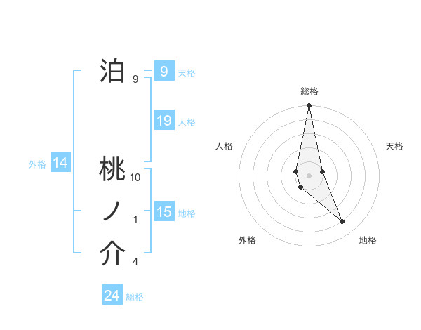 泊 桃ノ介さんの総格は24画の5点!