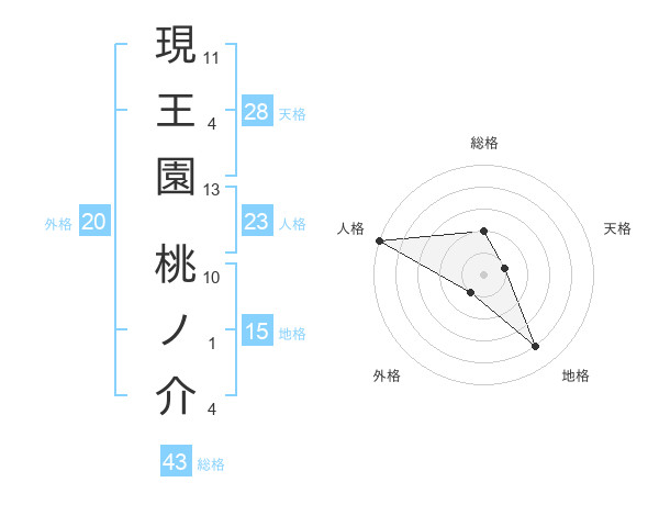 現王園 桃ノ介さんの人格は23画の5点!