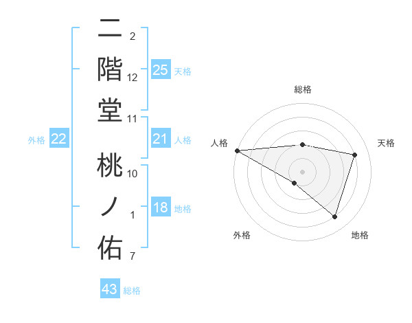 二階堂 桃ノ佑さんの天格は25画の4点!