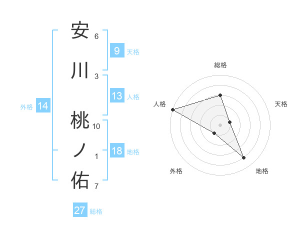 安川 桃ノ佑さんの総格は27画の3点!