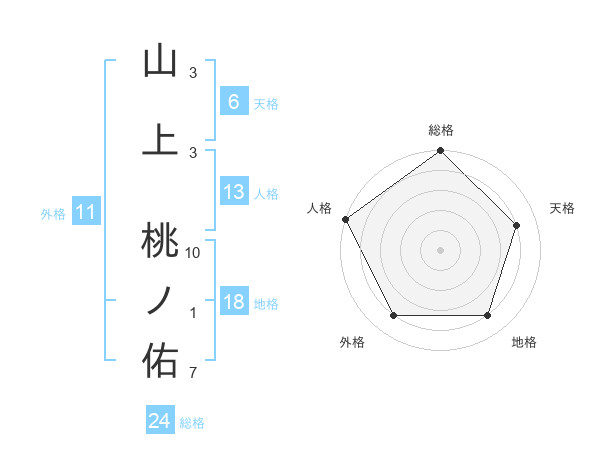 山上 桃ノ佑さんの総格は24画の5点!