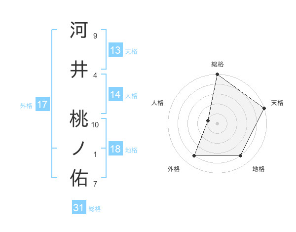 河井 桃ノ佑さんを姓名の画数から五運を鑑定