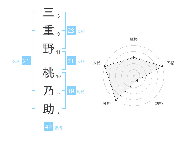 三重野 桃乃助さんを姓名の画数から五運を鑑定
