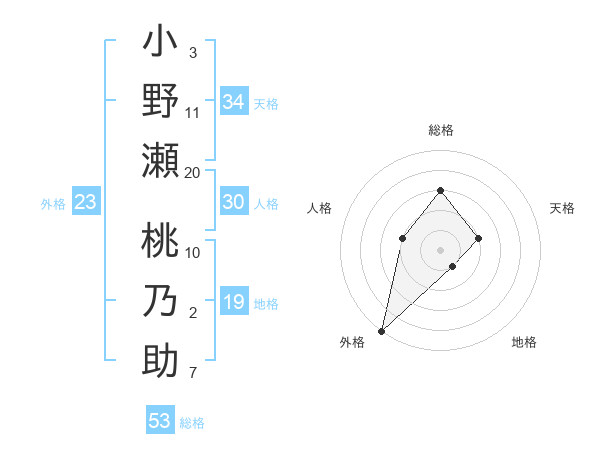小野瀬 桃乃助さんを姓名の画数から五運を鑑定