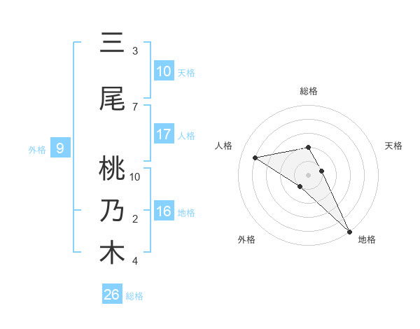 三尾 桃乃木さんを姓名の画数から五運を鑑定