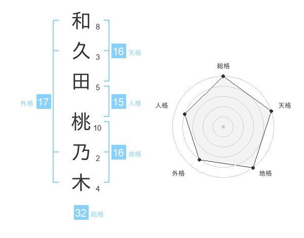 和久田 桃乃木さんを姓名の画数から五運を鑑定