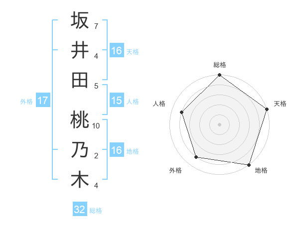 坂井田 桃乃木さんを姓名の画数から五運を鑑定