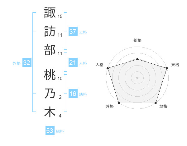 諏訪部 桃乃木さんの天格は37画の5点!