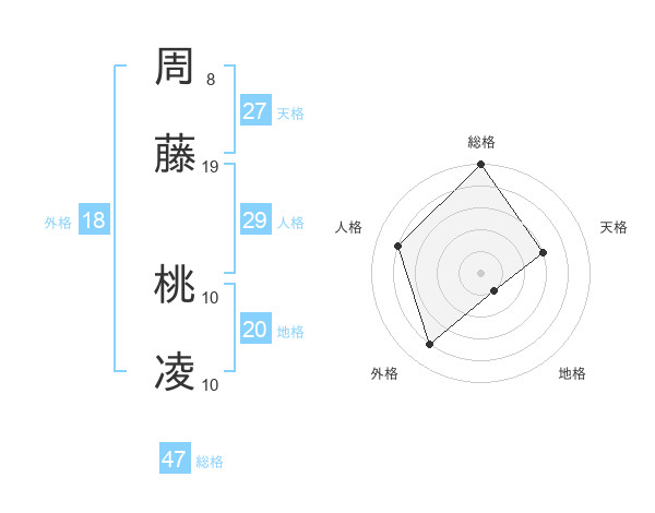 周藤 桃凌さんの総格は47画の5点!