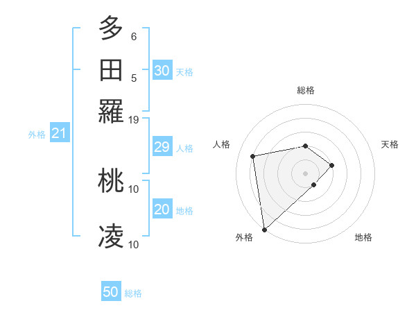 多田羅 桃凌さんを姓名の画数から五運を鑑定