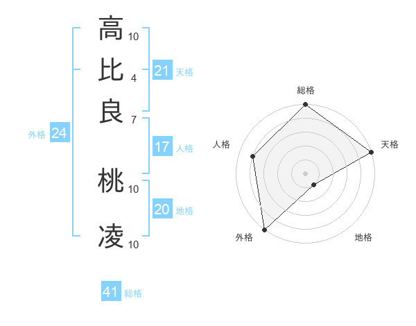 高比良 桃凌さんの天格は21画の5点!
