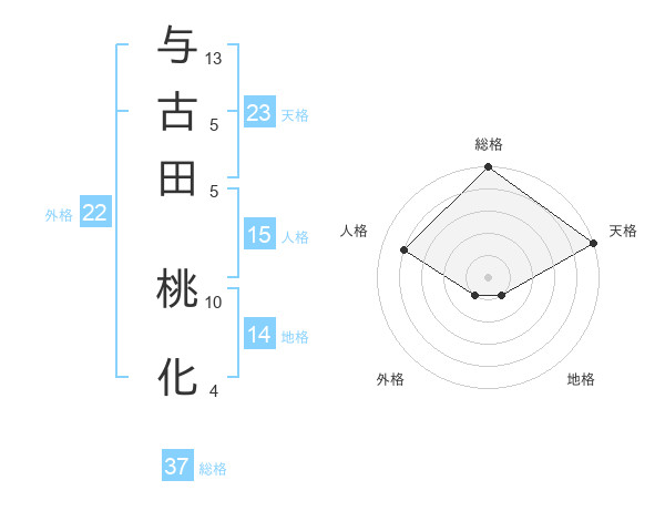 与古田 桃化さんを姓名の画数から五運を鑑定