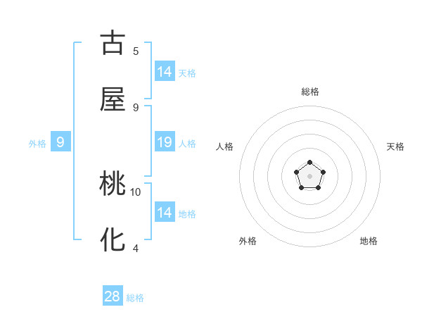 古屋 桃化さんを姓名の画数から五運を鑑定