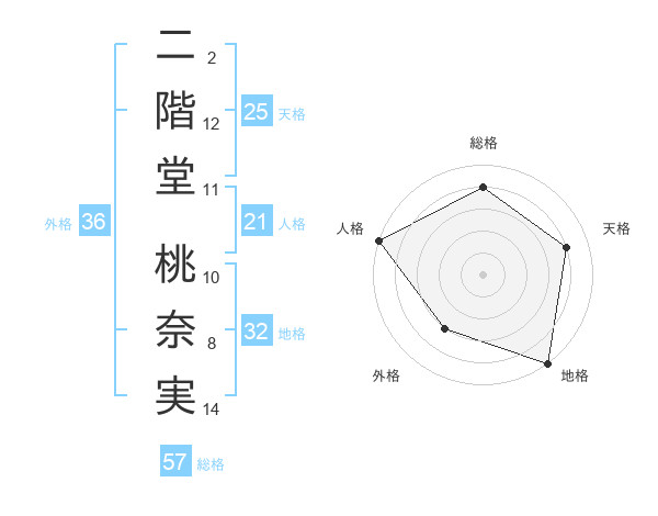 二階堂 桃奈実さんを姓名の画数から五運を鑑定