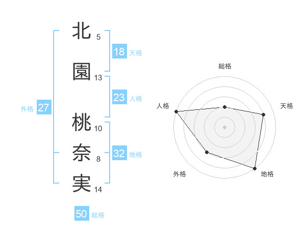 北園 桃奈実さんを姓名の画数から五運を鑑定