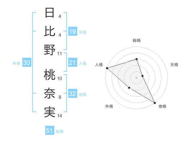 日比野 桃奈実さんを姓名の画数から五運を鑑定