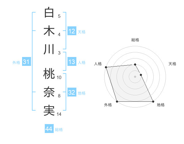 白木川 桃奈実さんを姓名の画数から五運を鑑定