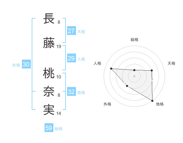 長藤 桃奈実さんを姓名の画数から五運を鑑定