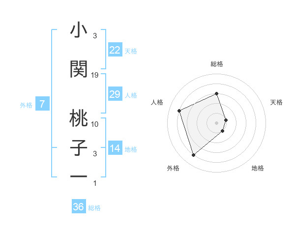 小関 桃子一さんを姓名の画数から五運を鑑定