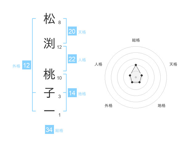 松渕 桃子一さんを姓名の画数から五運を鑑定