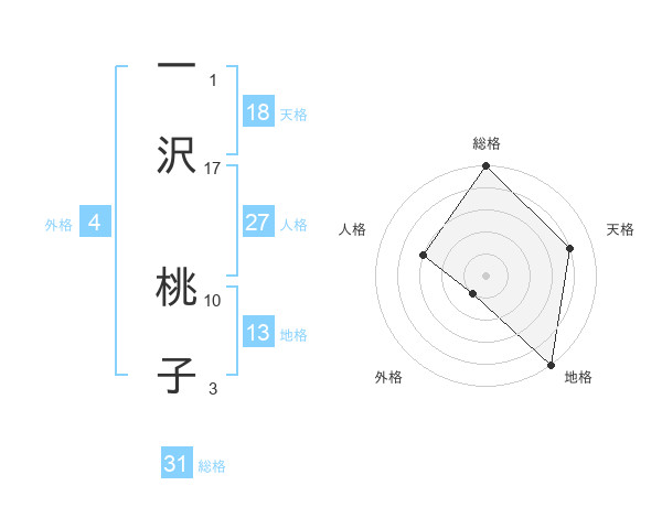 一沢 桃子さんの総格は31画の5点!