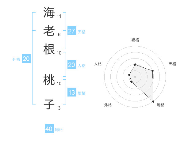 海老根 桃子さんを姓名の画数から五運を鑑定