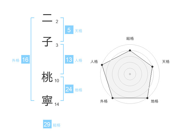 二子 桃寧さんの総格は29画の4点!