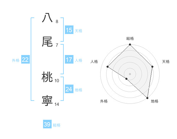 八尾 桃寧さんを姓名の画数から五運を鑑定