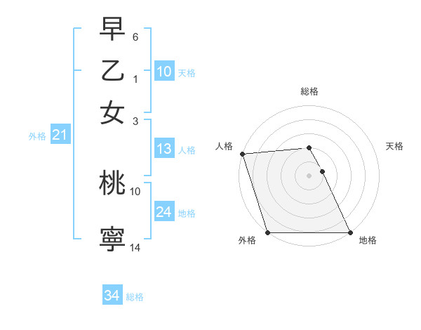 早乙女 桃寧さんを姓名の画数から五運を鑑定
