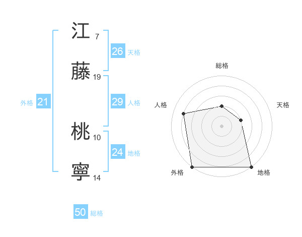 江藤 桃寧さんの総格は50画の2点!