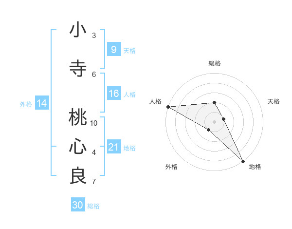 小寺 桃心良さんの総格は30画の2点!