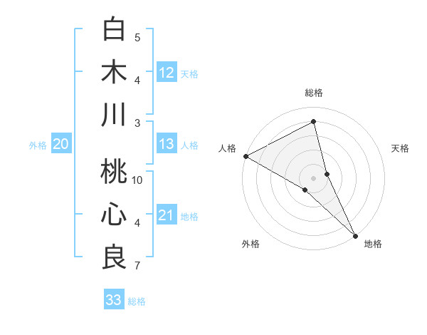 白木川 桃心良さんの総格は33画の4点!