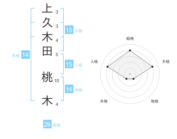 上久木田 桃木さんを姓名の画数から五運を鑑定