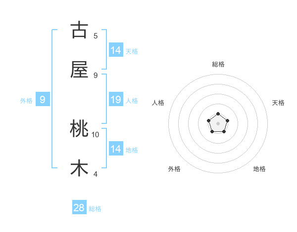 古屋 桃木さんを姓名の画数から五運を鑑定