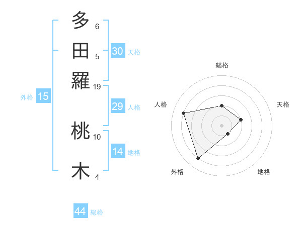 多田羅 桃木さんを姓名の画数から五運を鑑定