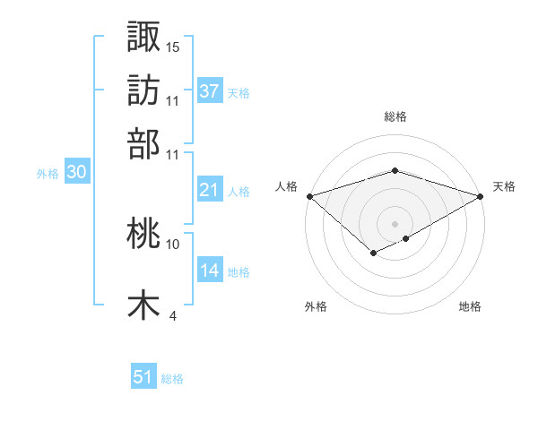 諏訪部 桃木さんを姓名の画数から五運を鑑定