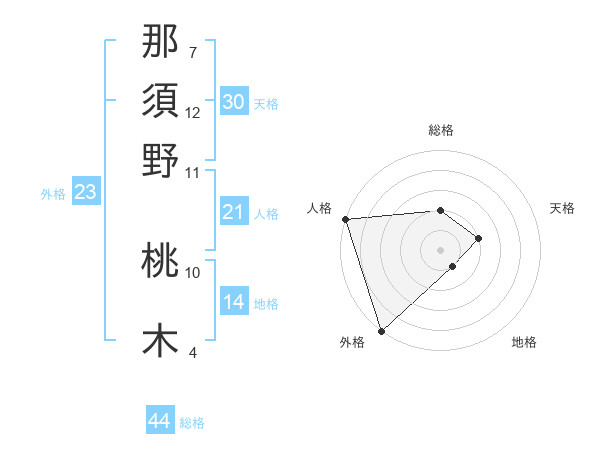 那須野 桃木さんを姓名の画数から五運を鑑定