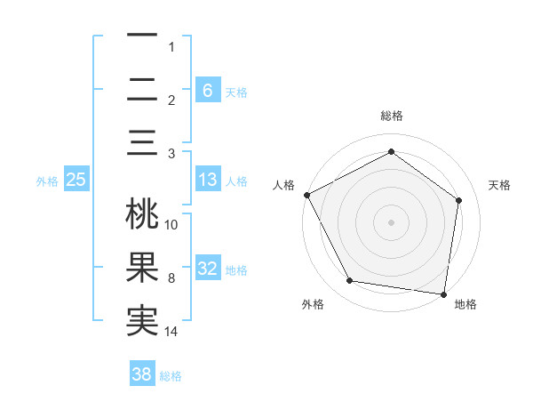一二三 桃果実さんを姓名の画数から五運を鑑定