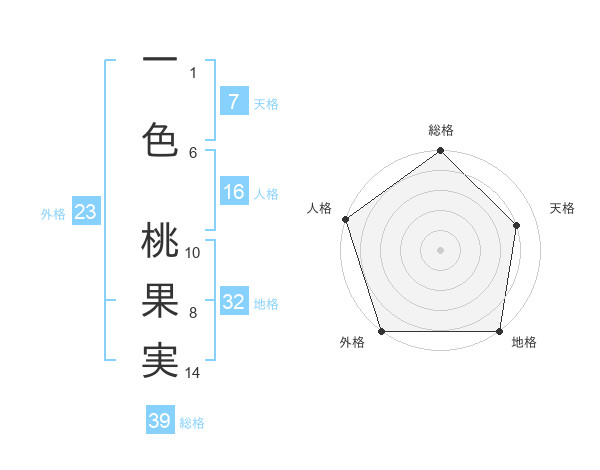 一色 桃果実さんを姓名の画数から五運を鑑定