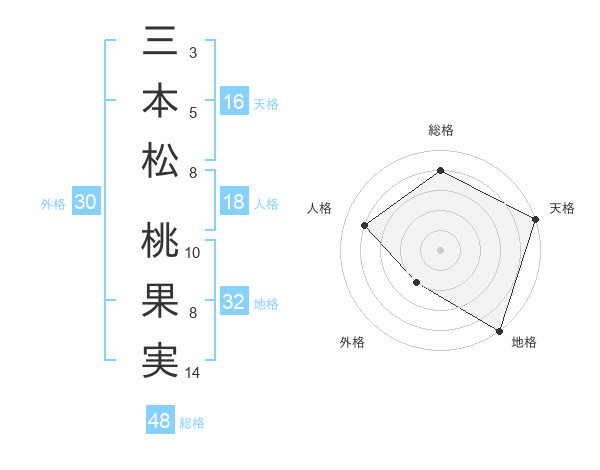 三本松 桃果実さんを姓名の画数から五運を鑑定