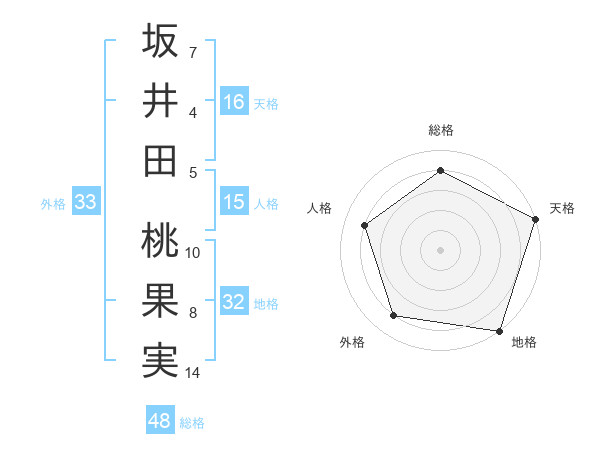 坂井田 桃果実さんの総格は48画の4点!