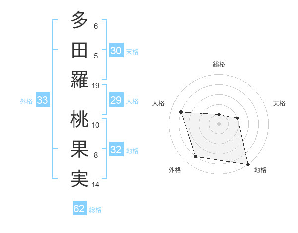 多田羅 桃果実さんを姓名の画数から五運を鑑定