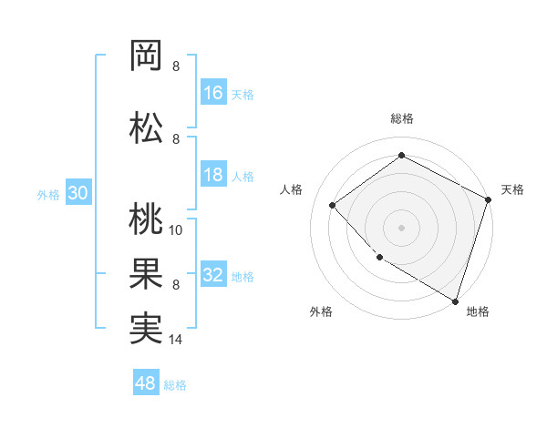 岡松 桃果実さんを姓名の画数から五運を鑑定